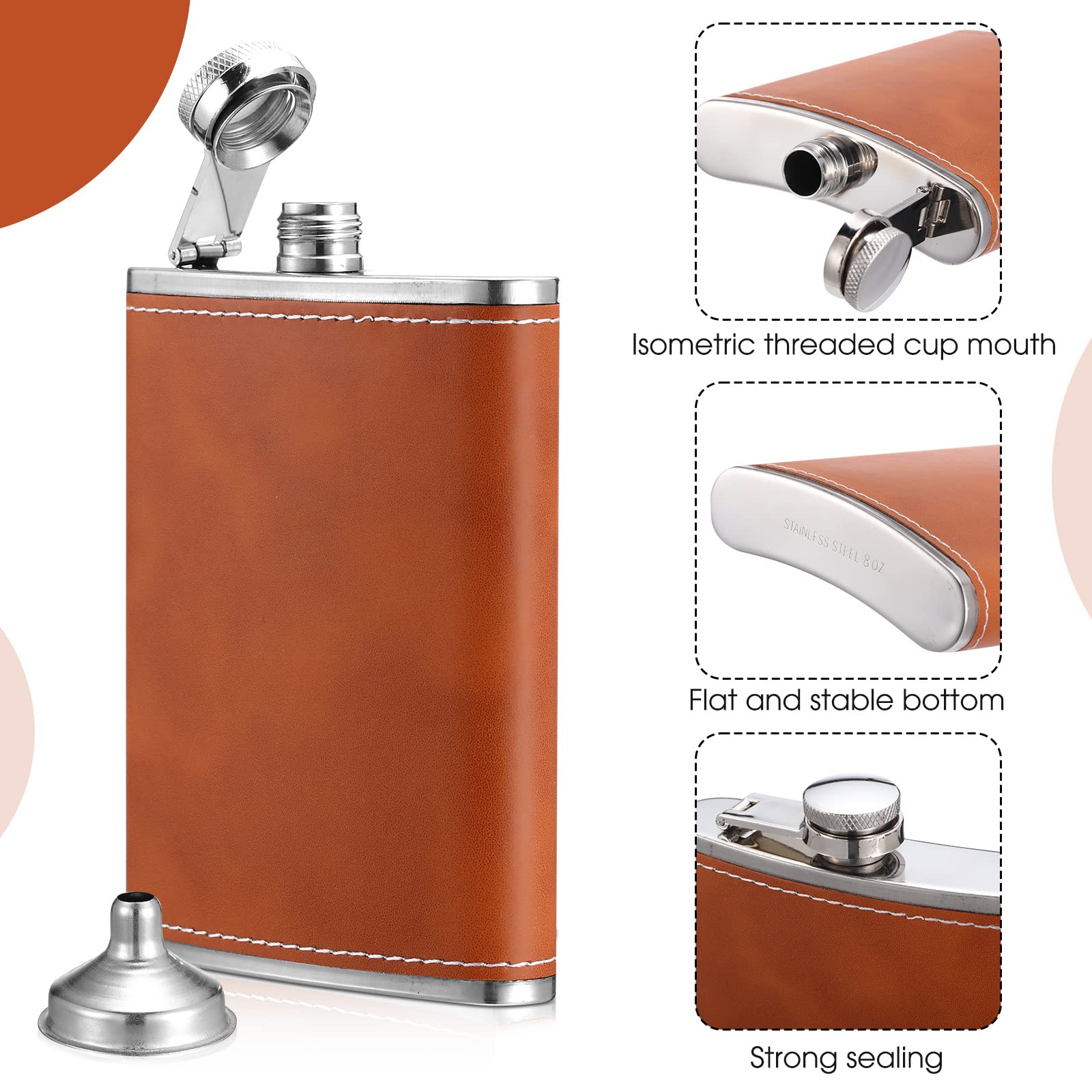 Sieral 12 Pcs Leather Hip Whiskey Flask 8 oz Stainless Steel Flask with Funnel and Wine Glasses for Men Women Cocktail Liquor Father's Day Gifts Camping Wedding Party(Brown)—