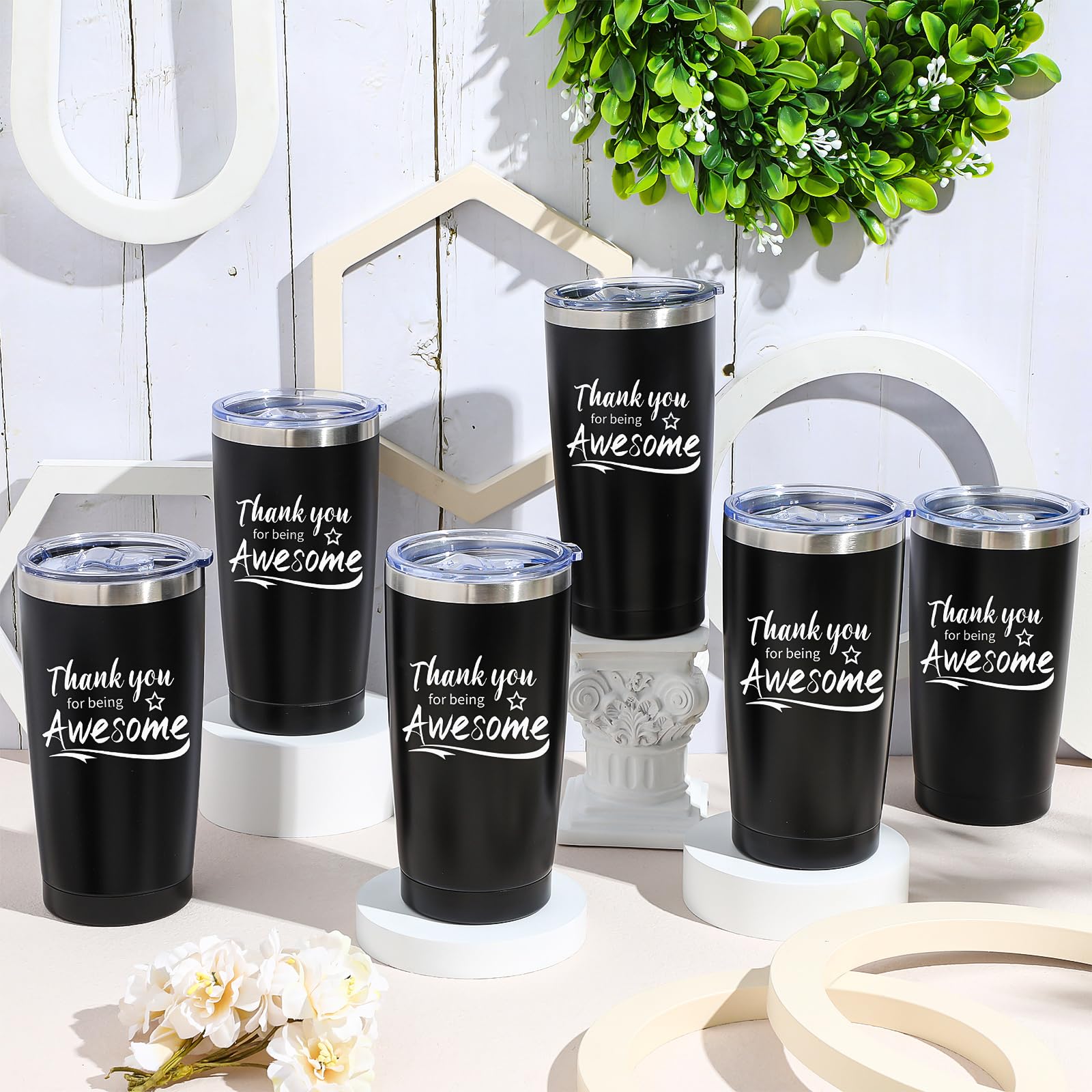 Sieral 60 Pieces Thank You for Being Awesome Tumbler, Thank You Supplies for Women Men 20oz Insulated Stainless Steel Travel Tumbler with Lid and Straw Appreciation Gift with Keychain (Black)